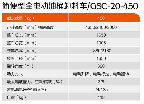 簡便型全電動(dòng)油桶卸料車GSC-20-450