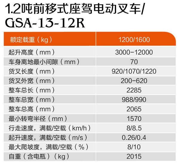 1.2噸前移式座駕電動叉車GSA-13-12R