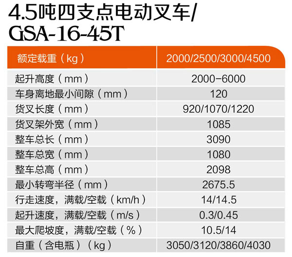 4.5噸四支點(diǎn)電動叉車GSA-16-45T