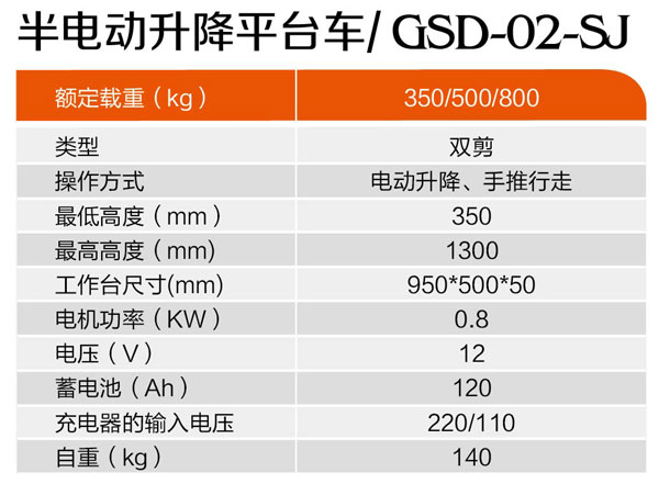 半電動升降平臺車GSD-02-SJ 作者:admin | 日期:2019-01-04 05:06:26 | 人氣:936 上一篇:半電動升降平臺車GSD-02-DJ 下一篇:電動行走型升降平臺GSD-03-DJ